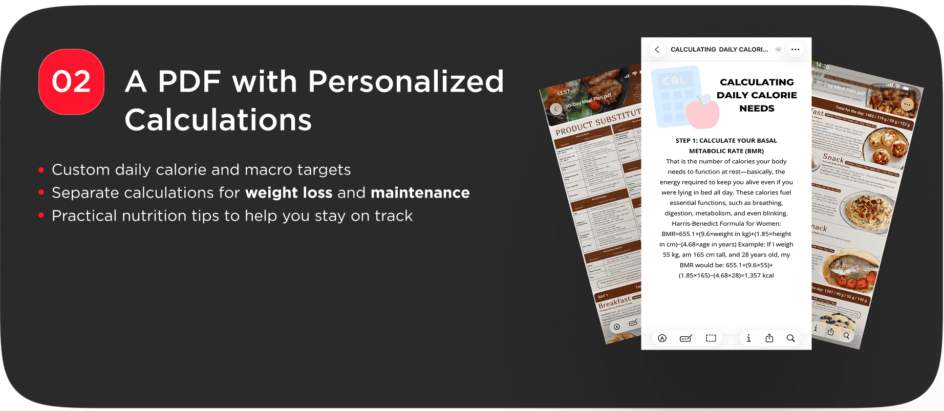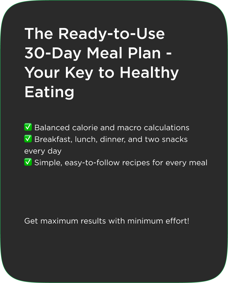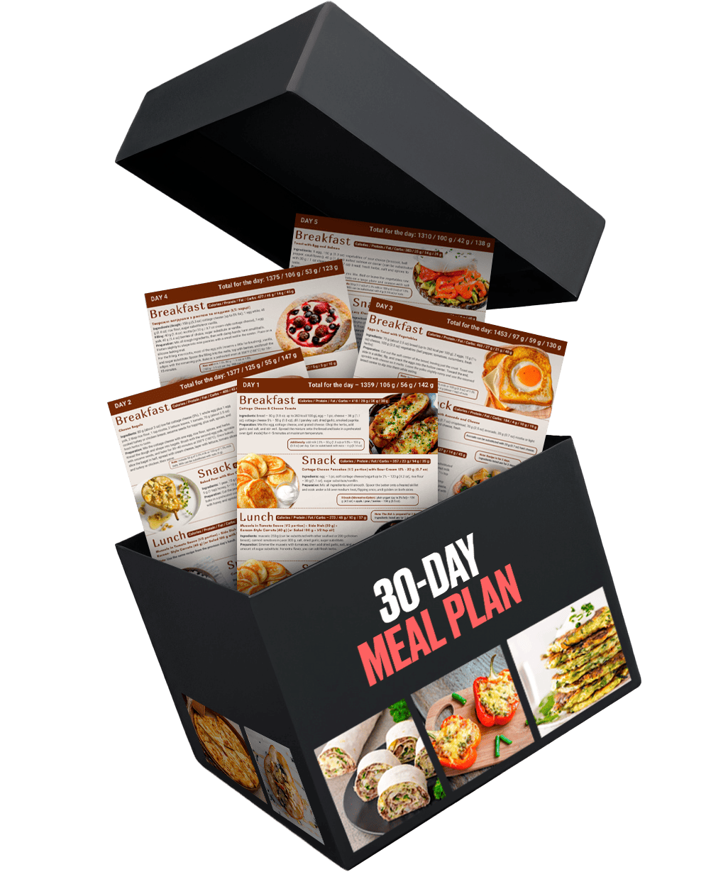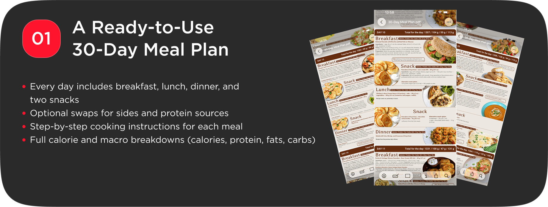 Imagine this: you have a ready-to-use 30-day meal plan, carefully designed by a certified nutritionist.