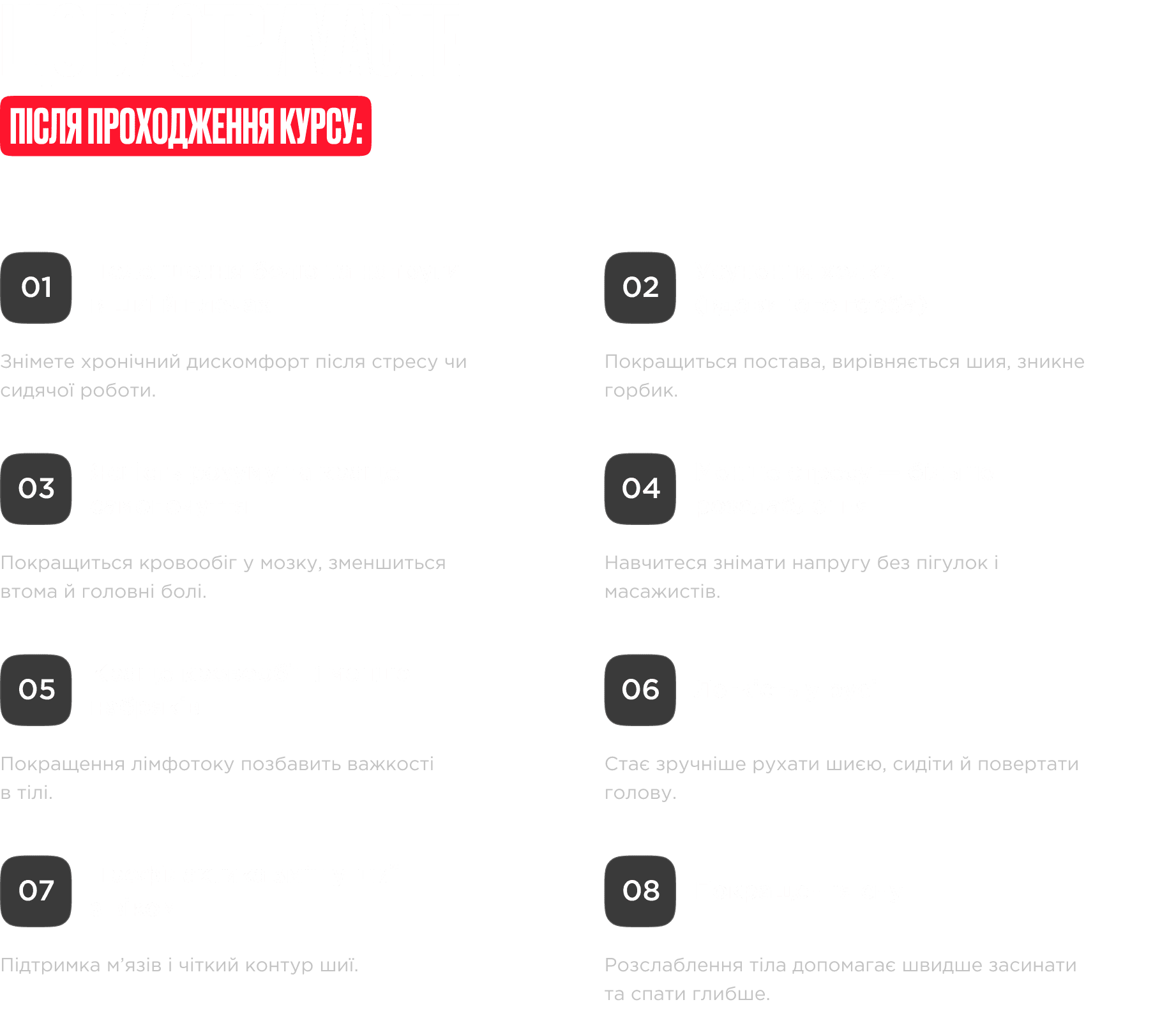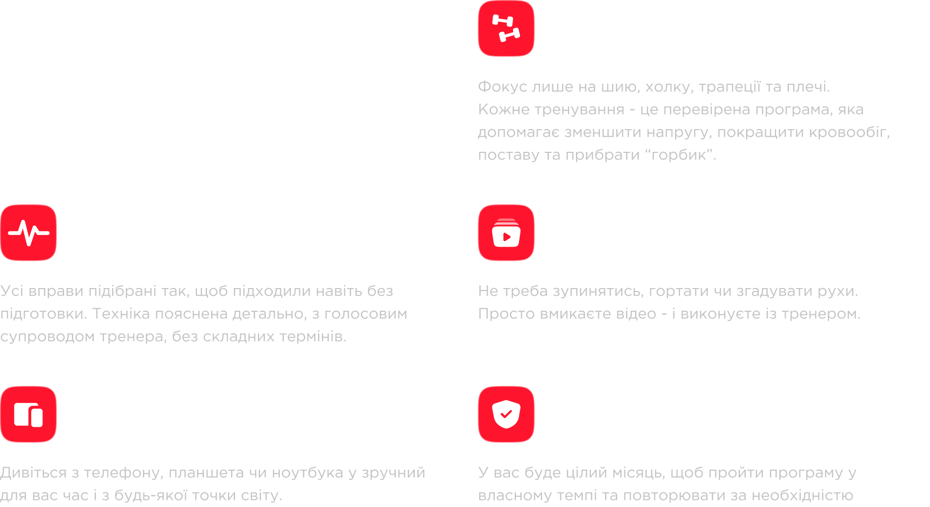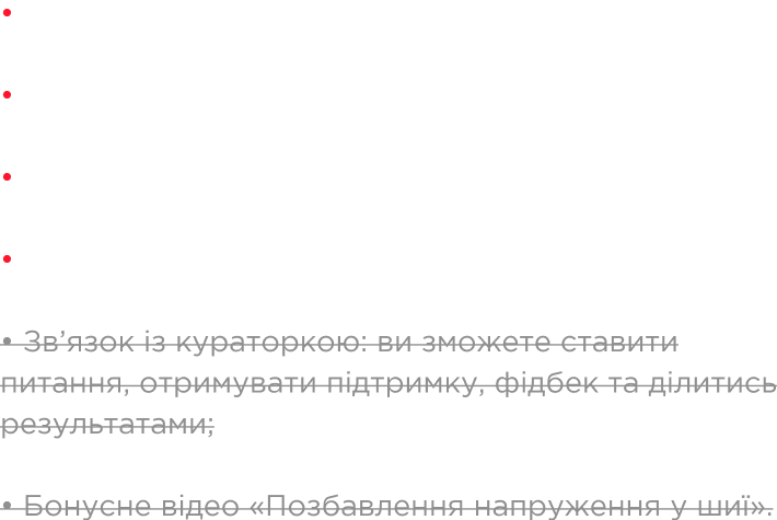 Ми створили цю програму, щоб зробити повернення до здорової спини максимально простим, ефективним і комфортним. Уже за кілька днів ви відчуєте, як тіло стає вільнішим, постава вирівнюється, а напруга зникає.