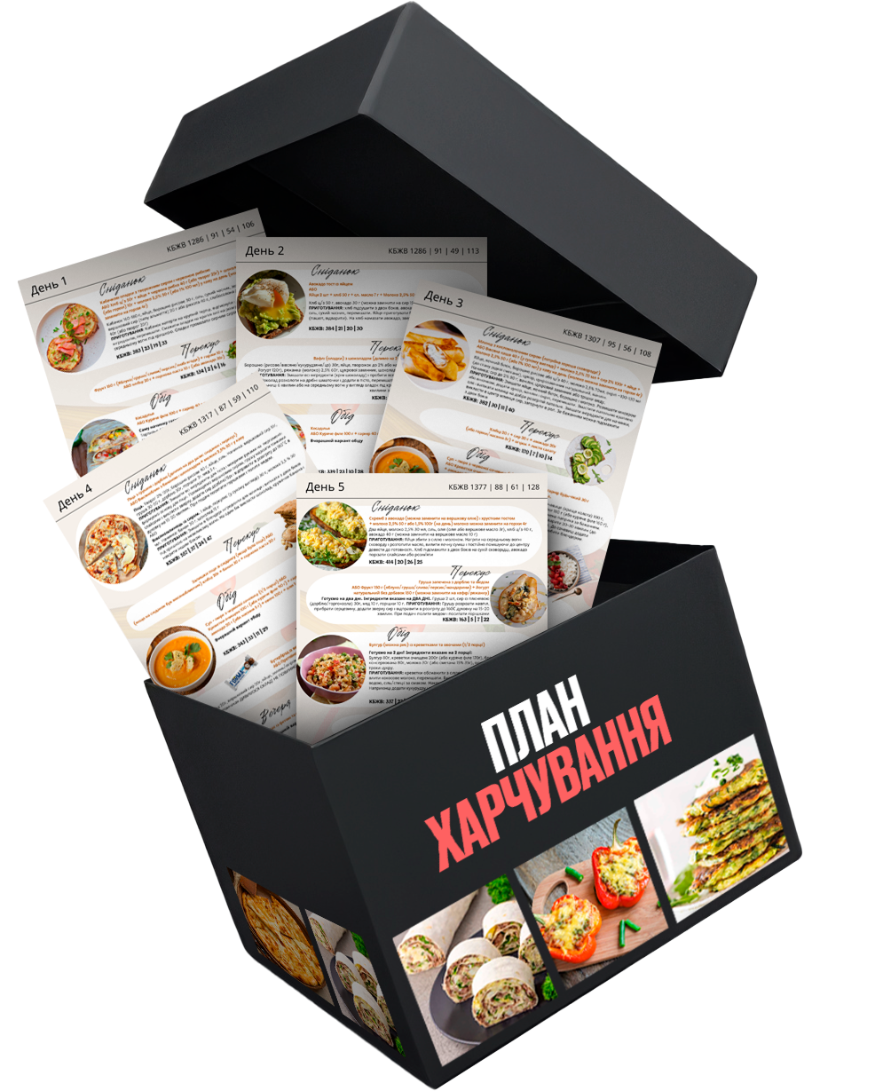 Сніданок, обід, вечеря, два перекуси на кожен день