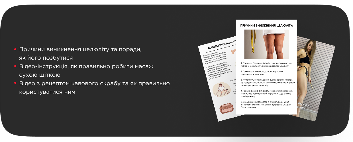 відео-інструкціями з масажу сухою щіткою та рецептом кавового скрабу,